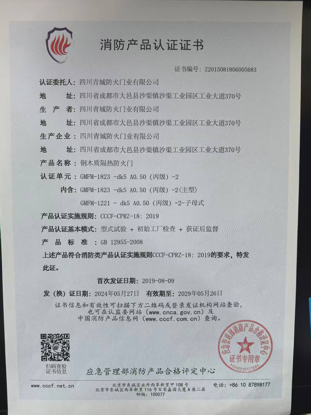 钢木质隔热防火门1823 丙级